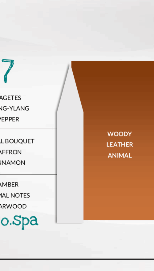 Открийте тайнствения свят на ориенталския лукс с Парфюм N7. Сандаловото дърво – централният елемент в композицията – е представено по изключително богат и модерен начин, обгърнато от нюанси на кожа, подправки, роза и опушен тамян. Резултатът е топъл, интензивен и магнетичен аромат, който оставя дълбока и запомняща се следа.